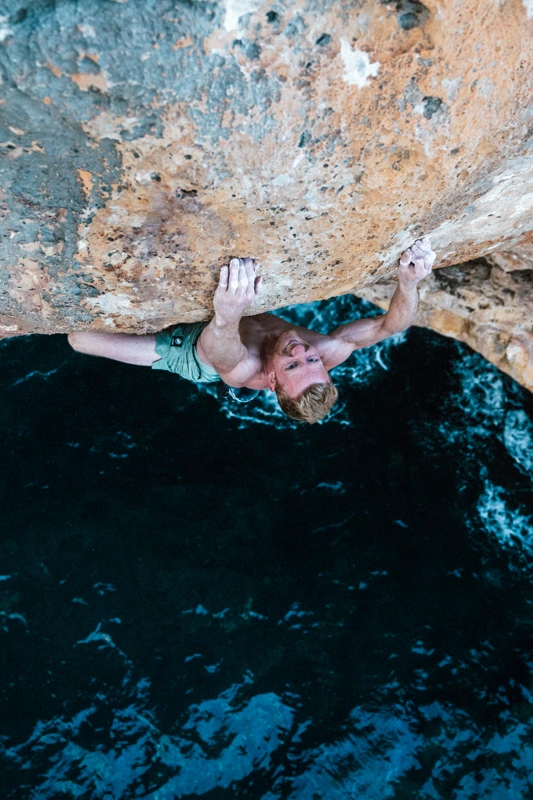 „Ich mag die Einfachheit, die Intensität und das damit verbundene Commitment. Generell würde ich sagen, dass man die Gefahr beim Deep Water Soloing ziemlich gut reduzieren kann, wenn man es richtig betreibt. Allerdings muss man definitiv viel weiter aus der eigenen Komfortzone herausgehen, wenn man sich mit voll ausgepowerten Unterarmen 15 Meter über dem Wasser hinaufkämpft. Chris ist zum Beispiel bei seinem Projekt, das er vor kurzem geklettert ist und das er jetzt „Vision Quest“ nennt, richtig böse gestürzt. Man kann es im Video sehen, und es zeigt, dass das DWS-Klettern bei allem Spaß immer noch ernst genommen werden muss.“