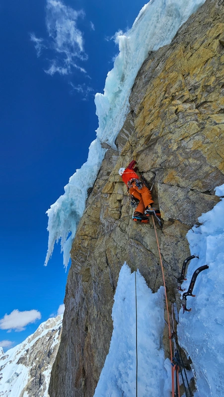 Das Wetter für die Erstbegehung erwies sich als nahezu ideal: für die anspruchsvolle Kletterei nicht zu kalt und gleichzeitig aber auch nicht zu warm, sodass die Stein – und Eisschlaggefahr gering blieb. Die Wand war trocken und stabil, was eine zügige und sichere Begehung erlaubte.